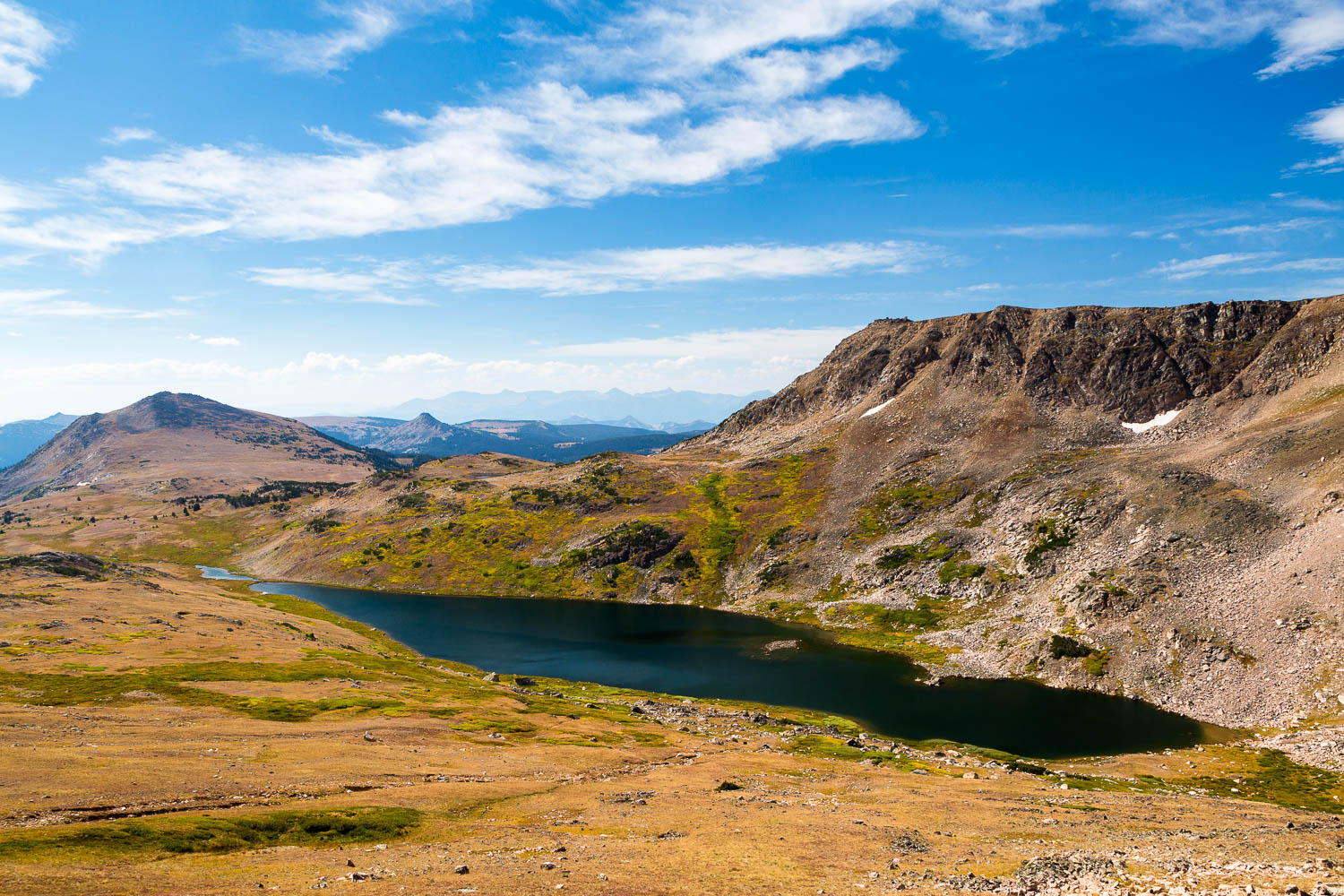 One lengthy switchback after another will bring you higher and higher until you’re finally back into a large alpine tundra field. Another final climb brings you up to the small plateau of Tibbs Butte Pass. Here you’ll have panoramic views around the area, marred only by some of the highest of the Beartooth Mountains. Tibbs Butte Pass is yet another spot along the trail that deserves to be appreciated properly instead of rushed through.
