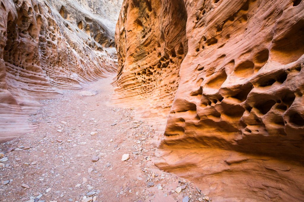 You pass through more slots, and even head underneath a massive boulder until you reach the initial junction again. From here, it’s an easy walk back down the wash and to the trailhead.