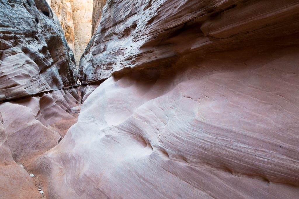 More narrows await until you reach what looks to be a completely wavy slot canyon with no ground. At first appearance, it looks deceptively hard on the ankles, but upon closer inspection, there is actually a ground. Passing through this area will feel like you’re walking in between solidified curtains. It’s easily one of the more interesting slot features in the entire area.