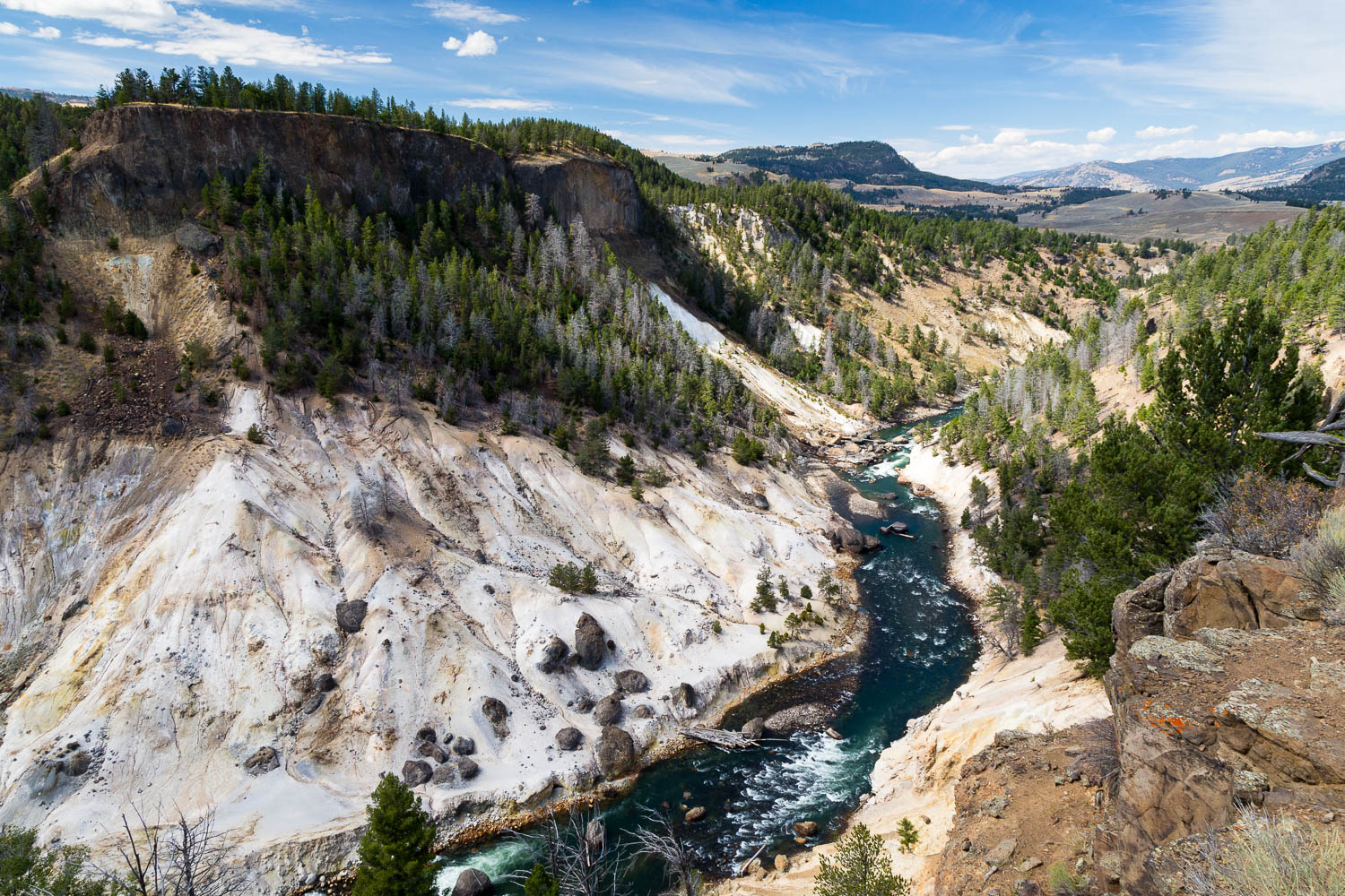 Different views looking straight down into the canyon at times make this one of the slower two mile hikes, despite the trail being easy-going. Most people will be distracted by the many different vantage points and jaw-dropping vistas looking up and down the canyon. It doesn’t take much hiking before the Calcite Springs stop along the highway on the other side of the canyon comes into view with people high up on the edge of a protected cliff. Farther up the trail a view of the Tower Falls area comes into view as well.