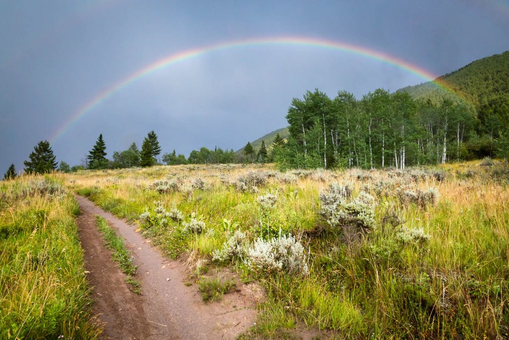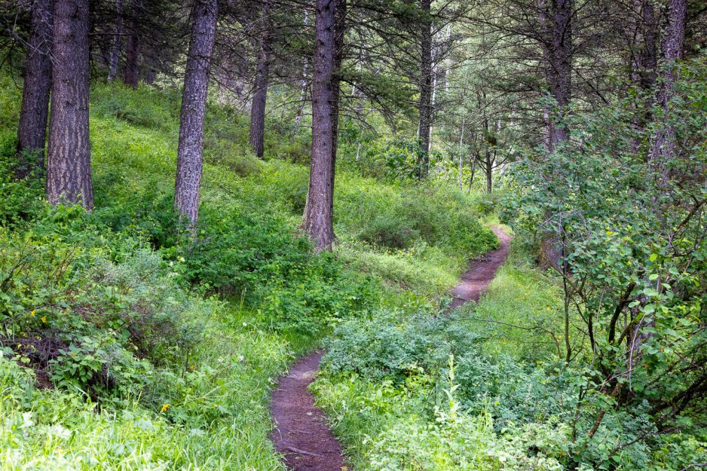 At 0.5 miles in, you’ll reach a junction with Linda’s Trail. Continue straight to continue up the KC Trail. You’ll once again enter into a peaceful aspen grove as you continue to gently climb. You’ll pass through another meadow before entering into the old forest for the remainder of the trail. At this point the KC Trail begins to gain more elevation as you approach the Sink or Swim Trail at its terminus.
