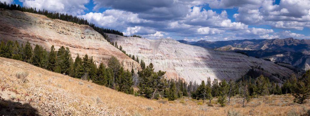 Regardless of whether you choose to end your hike here or continue onward, it’s highly recommended you take the spur trail to the east to experience an unparalleled view of the Crystal Creek and Gros Ventre River drainages and confluence. A nearly 180 degree view of a massive open valley is sprawled out in front you, with rolling hills far below lining Gros Ventre Road as it meanders back deeper into the Gros Ventres with the majestic Wind River Mountains visible above the horizon. The Gros Ventre River peeks out from a few lower elevations to the east while Crystal Creek emerges from the higher peaks to the south. If you’re short on time, this is a great place to stop for a snack before heading back.
