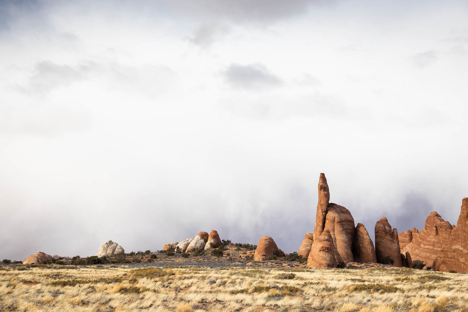 Back at the main trail, head right to continue toward Broken Arch. At this point the trail meanders across the expansive grasslands flat, providing you with a different type of openness than you find in many other places in the park.