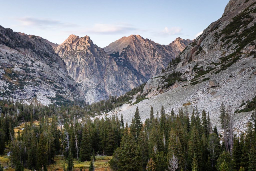 As the forest begins to slightly thin again, meadows open up with massive granite walls rising above another wetlands area. Ahead, the peaks rise high above the landscape, and just like the previous wetlands, the trail climbs out the opposite end and back into the forest. Of course there’s also a fantastic view looking down the South Fork of Cascade Canyon as you make your way out.