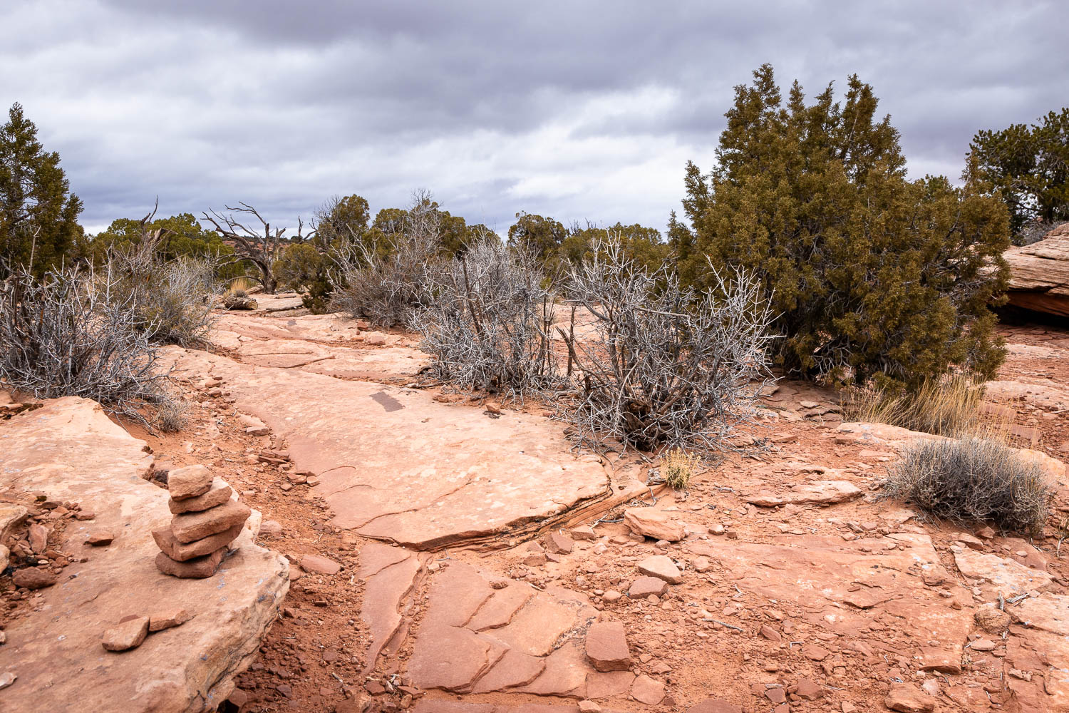 Once on the main trail again, you’ll veer back into a juniper forest and over some slickrock. If you haven’t already noticed, you’ll soon notice more prominent examples of cryptobiotic soil. Please stay on the trail and do not disturb the soil at all. It is a living colony of different fungi, bacteria, and more, and can take decades, at best, to regrow. This is why you see so many signs in the region about staying on the trail.