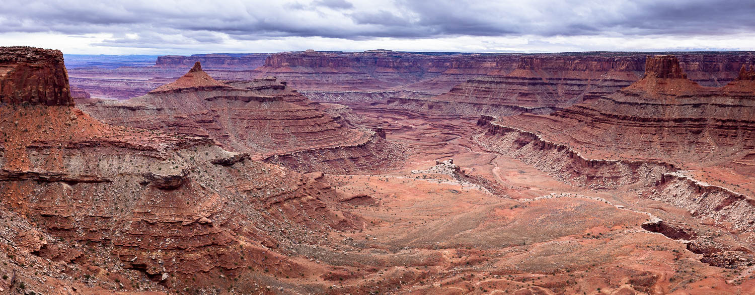 The West Rim Trail in Dead Horse Point State Park is an easy 6.5 mile (one way) hike, which includes all the overlook spur trails. This includes the Big Horn Overlook, the Rim Overlook, the Shafer Canyon Overlook, and the Meander Overlook, all beginning from Dead Horse Point and ending at the Visitor Center. It could also just as easily be reversed. Also bear in mind that if you don’t shuttle a vehicle, you’ll either have to hike back along the road, or complete the loop by also hiking the East Rim Trail.