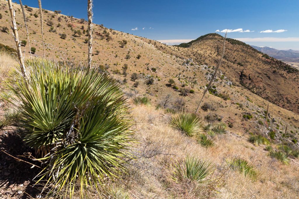 From the Coronado National Memorial Visitor Center, drive 3.3 miles west along the main park road. At Montezuma Pass, hike south along the Arizona Trail for 1 mile to reach the Yaqui Ridge Trail.
